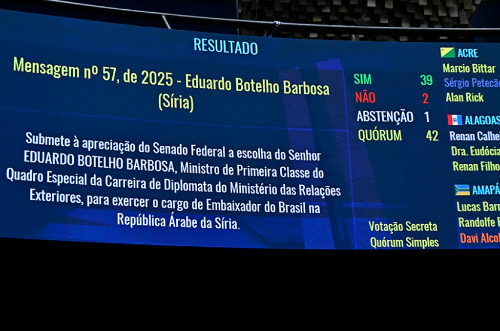 O Senado votou mais seis indicações de diplomatas que devem chefiar representações brasileiras no exterior, em uma série de votações iniciada na semana passada. Na sessão desta nesta quarta-feira (15), a Casa aprovou as mensagens do Poder Executivo para as embaixadas de Congo, Iraque, Polônia, Quênia, Síria e Sri Lanka.